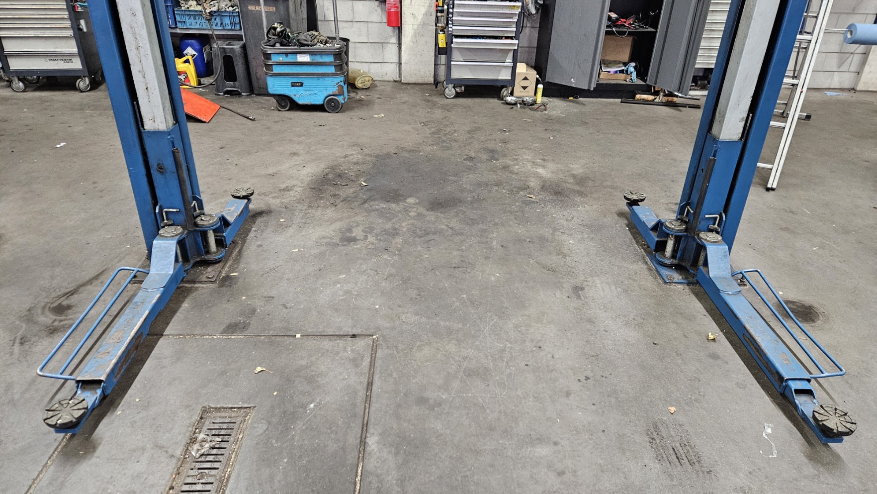 Gebruikte electro-mechanische 2 koloms hefbrug autobrug
